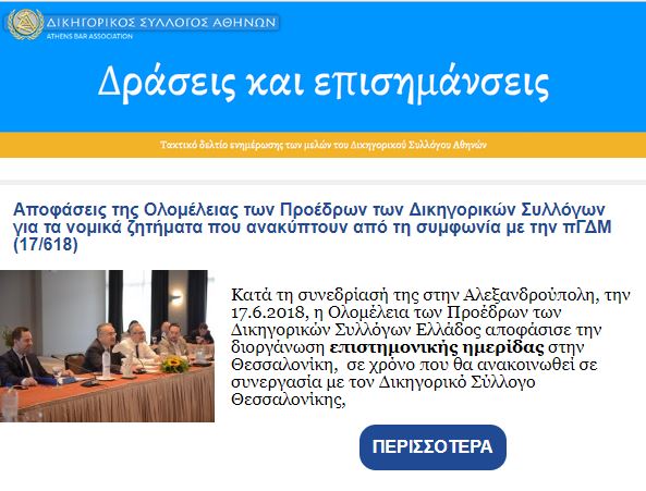 Αποστολή newsletter από τον ΔΣΑ - Οδηγίες για την εγγραφή στη λίστα αποδεκτών