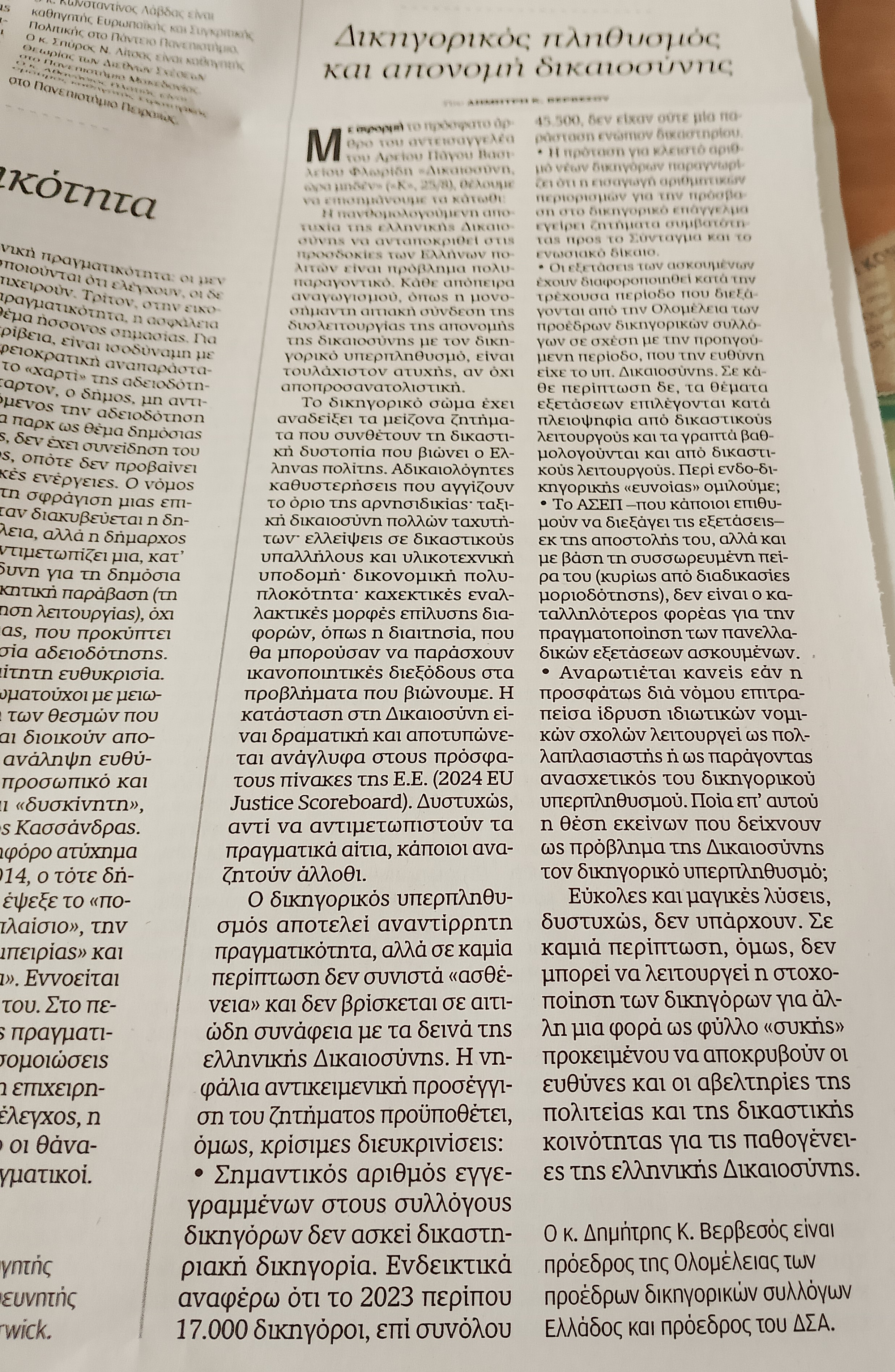 Άρθρο- απάντηση στον αντιεισαγγελέα του Αρείου Πάγου Β. Φλωρίδη, του Προέδρου της Ολομέλειας των Προέδρων των Δικηγορικων Συλλόγων Ελλάδος (προέδρου του ΔΣΑ) Δ. Βερβεσού, στο σημερινο φύλλο (1-9-2024) της "Καθημερινης της Κυριακής". (Επισυνάπτεται)