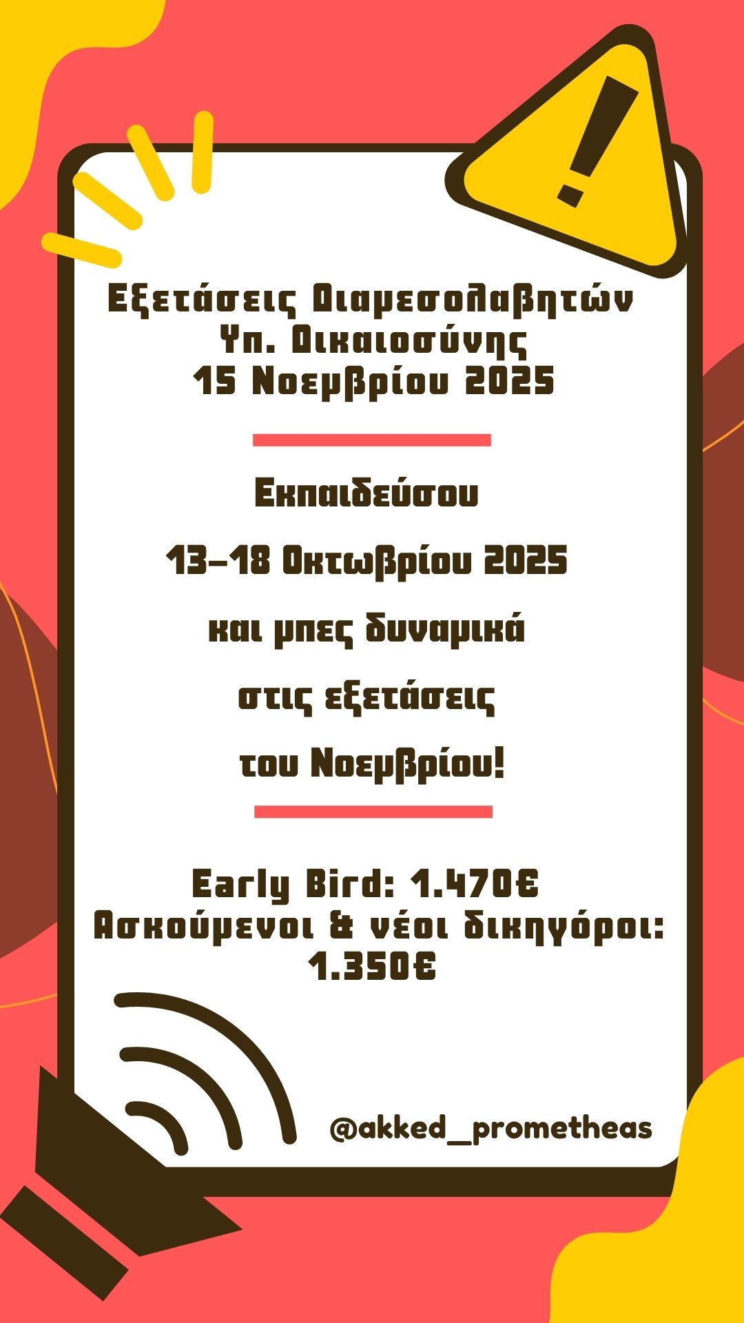 Εξετάσεις Διαμεσολαβητών Υπ. Δικαιοσύνης 15 Νοεμβρίου 2025