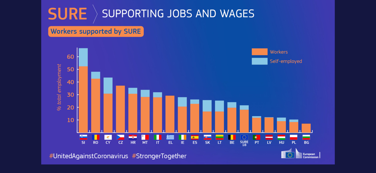 Σε αντίθεση με τα υπόλοιπα κράτη μέλη της Ευρωπαϊκής Ένωσης, η Ελλάδα, στη β’ φάση της πανδημίας, δεν άντλησε πόρους υπέρ των αυτοαπασχολουμένων από τον Κανονισμό SURΕ, που είναι το βασικό χρηματοδοτικό εργαλείο της ΕΕ για την αντιμετώπιση των δυσμενών συνεπειών της πανδημίας σε εργαζομένους και αυτοαπασχολουμένους.