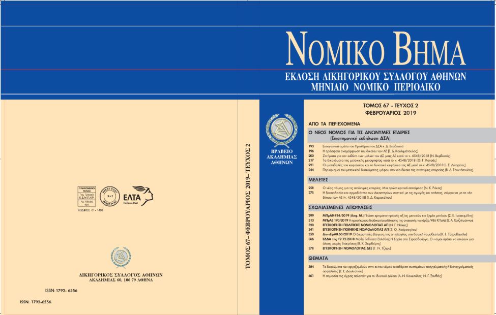 Σας ενημερώνουμε ότι αναρτήθηκε στην ιστοσελίδα του Συλλόγου μας το τεύχος Φεβρουαρίου 2019 (2) του «Νομικού Βήματος».