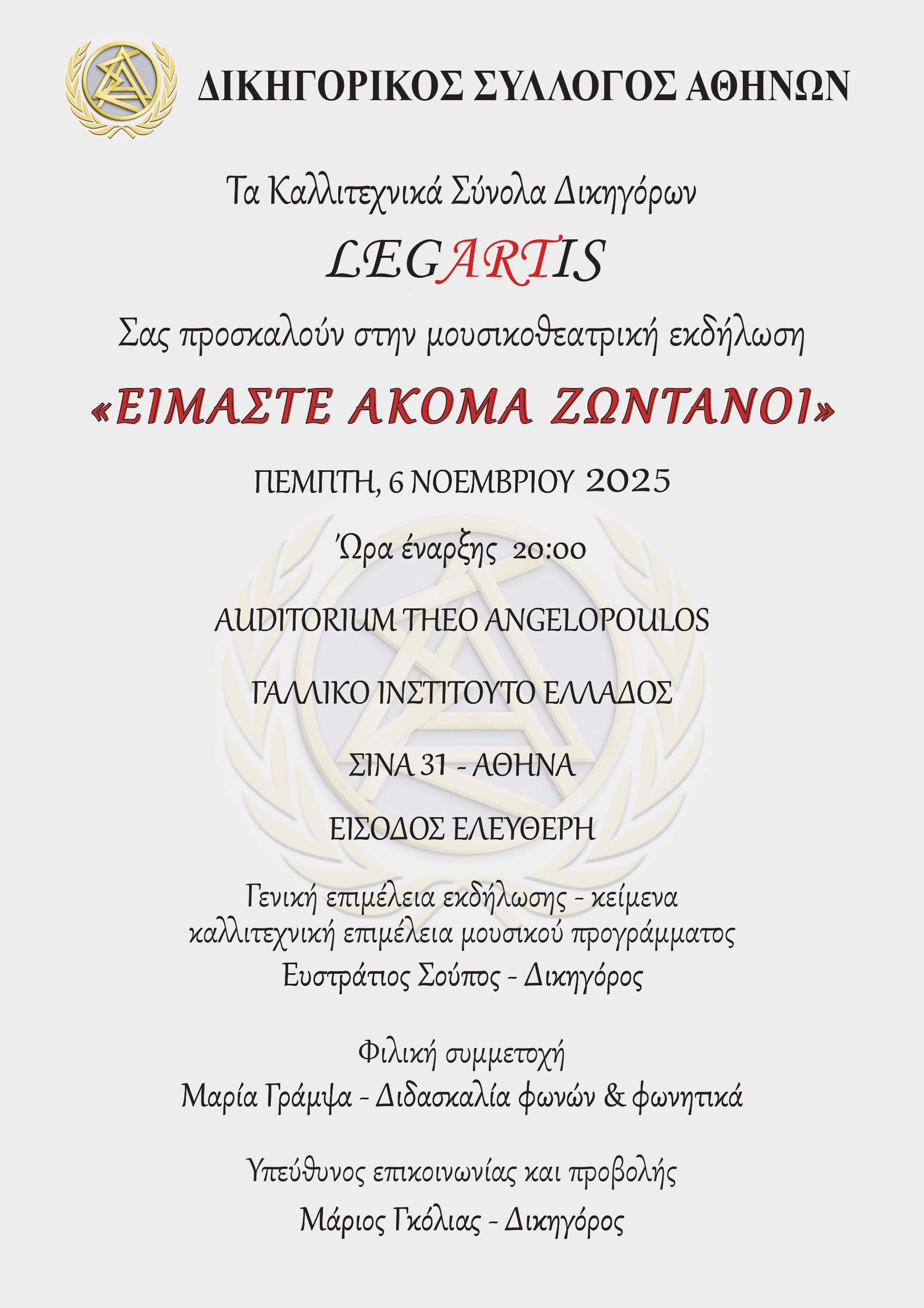 Τα Καλλιτεχνικά Σύνολα Δικηγόρων LEGARTIS σας προσκαλούν στην μουσικοθεατρική εκδήλωση