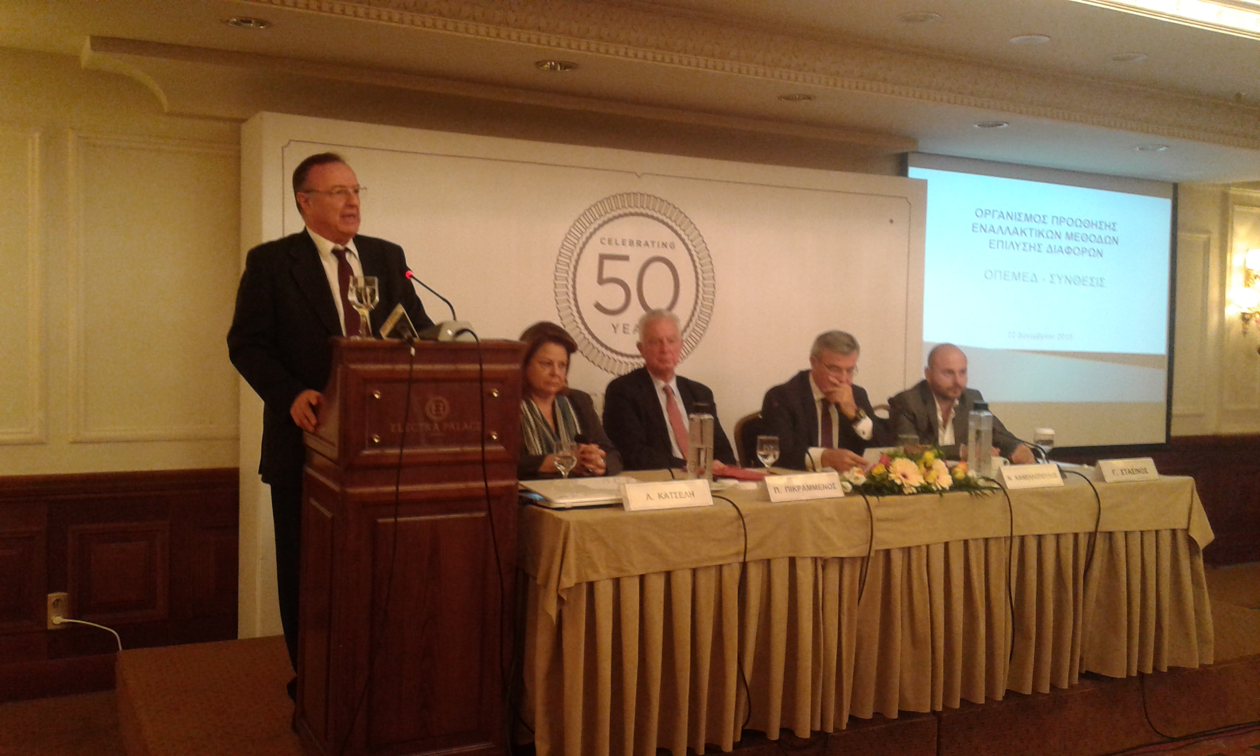 Ομιλία-παρέμβαση προέδρου Δ.Σ.Α Β. Αλεξανδρή, στην παρουσίαση του νέου Οργανισμού Προώθησης Εναλλακτικών Μεθόδων Επίλυσης Διαφορών (Ο.Π.Ε.Μ.Ε.Δ)