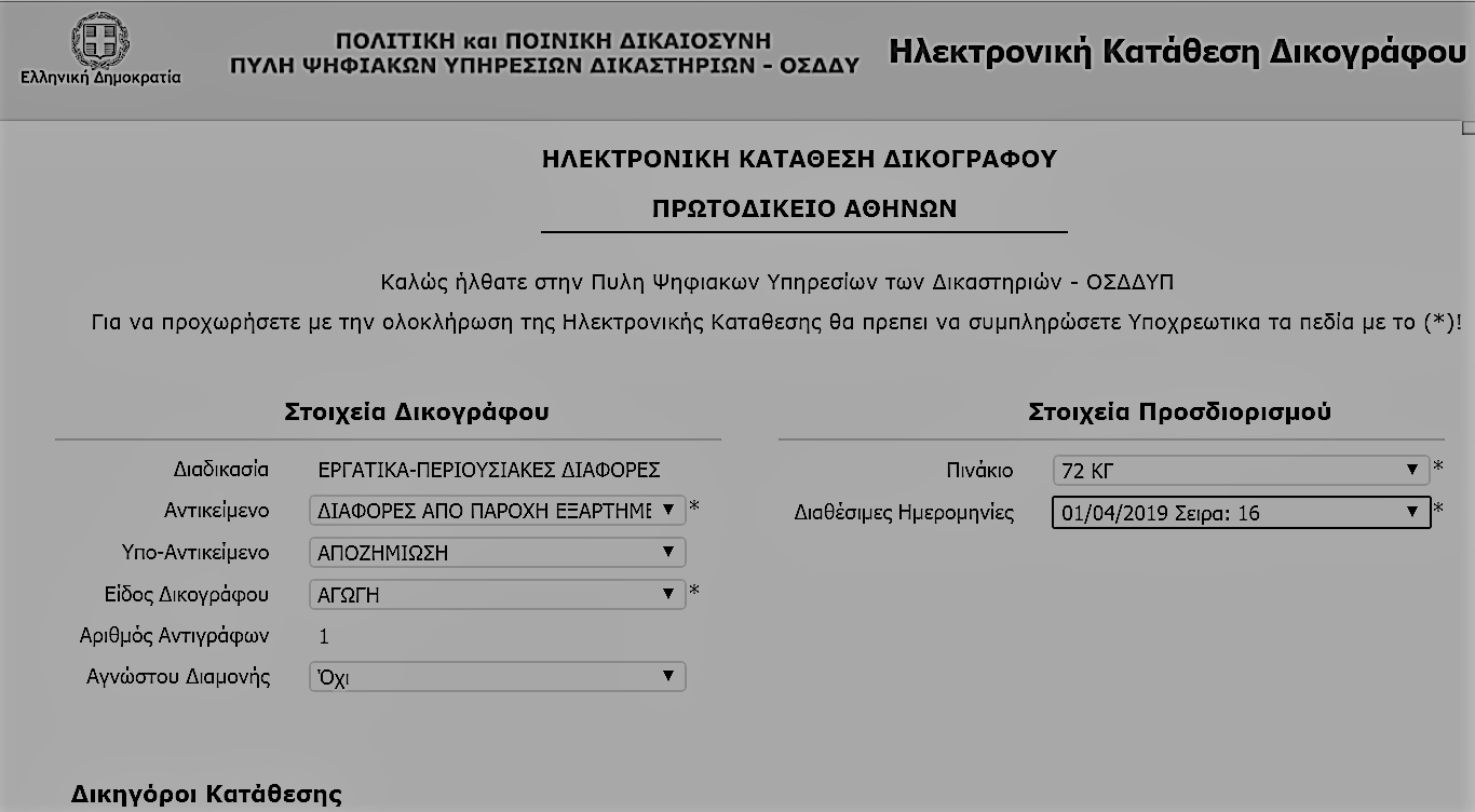 Μετά από πολύχρονους και επίμονους αγώνες του δικηγορικού σώματος για την προώθηση της διαδικασίας της ηλεκτρονικής κατάθεσης δικογράφων στα δικαστήρια είναι πραγματικότητα. Ενεργοποιήθηκε η Ηλεκτρονική Κατάθεση και στο Πρωτοδικείο Αθηνών.