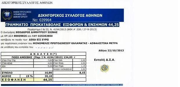 Σημειωτέον δε ότι με την υπ’ αριθμ. 87755οικ./11.10.2013 εγκύκλιο της Γενικής Διεύθυνσης Δικαιοσύνης του Υπουργείου Δικαιοσύνης, Διαφάνειας και Ανθρωπίνων Δικαιωμάτων [συνημμένο αρχείο] ενημερώθηκαν οι δικαστικές αρχές και υπηρεσίες της χώρας προκειμένου να δέχονται τα νέου τύπου γραμμάτια που έχουν εκδοθεί ηλεκτρονικά, μετά των ενσωματωμένων σε αυτά ενσήμων των ταμείων (ΕΤΑΑ και ΤΑΧΔΙΚ).
