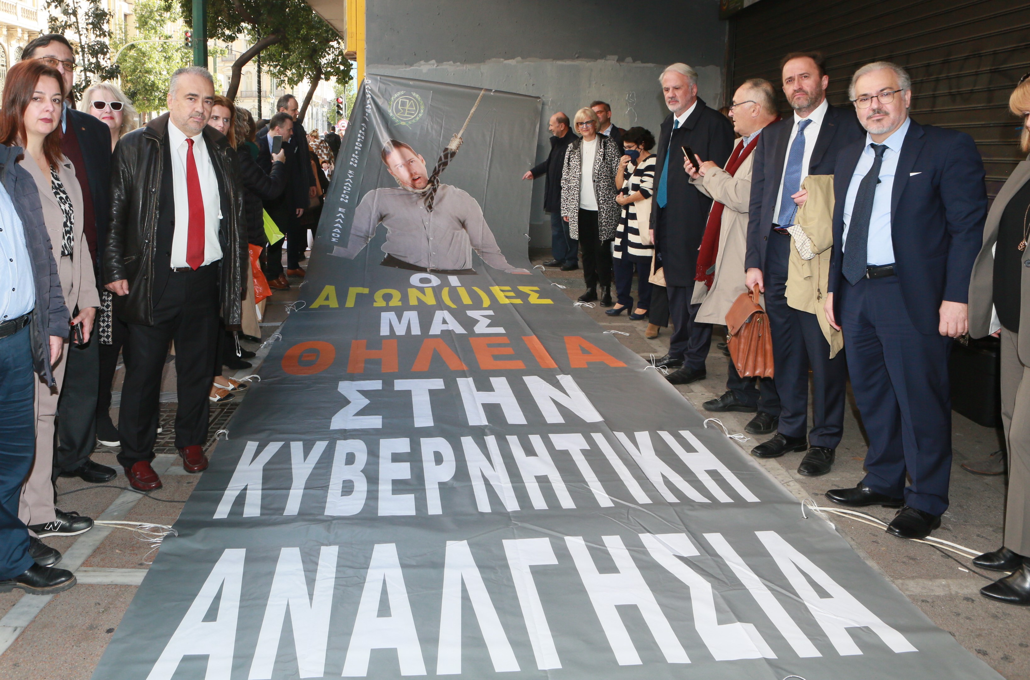 Συγκέντρωση διαμαρτυρίας πραγματοποίησε σήμερα η Ολομέλεια των Προέδρων των Δικηγορικών Συλλόγων Ελλάδος έξω από το Υπουργείο Εργασίας για την αύξηση των ασφαλιστικών εισφορών και για την Κυβερνητική αδιαφορία στην οικονομική στήριξη του κλάδου και στην επίλυση των προβλημάτων του.