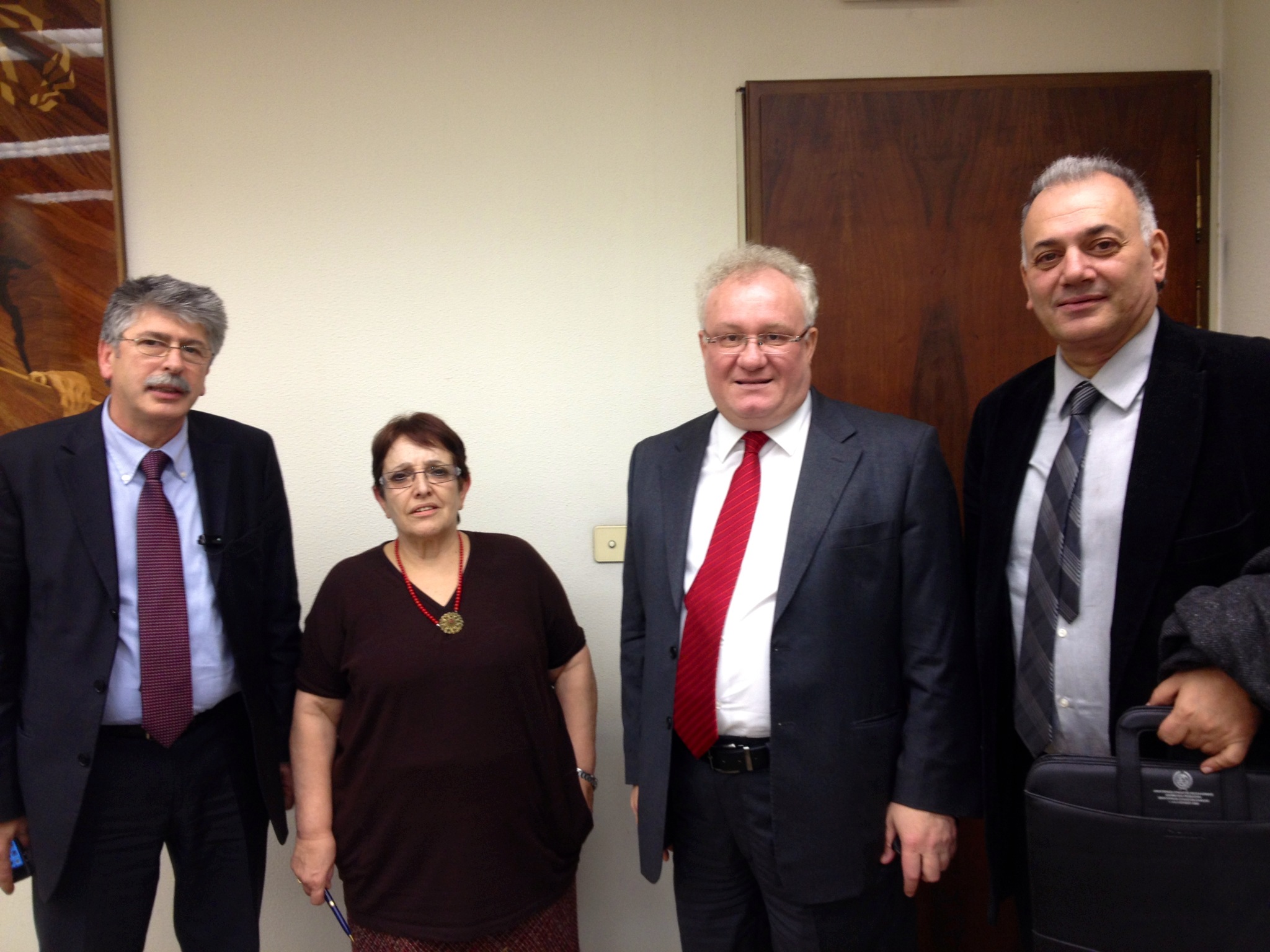 Μέλη της Ολομέλειας των Προέδρων των Δικηγορικών Συλλόγων Ελλάδος και, πιο συγκεκριμένα, οι κ.κ. Γιάννης Αδαμόπουλος, Πρόεδρος του Δικηγορικού Συλλόγου Αθηνών, Νίκος Βαλεργάκης, Πρόεδρος του Δικηγορικού Συλλόγου Θεσσαλονίκης και Στέλιος Μανουσάκης, Πρόεδρος του Δικηγορικού Συλλόγου Πειραιά και ο Σύμβουλος του ΔΣ ΔΣΑ κ. Άγγελος Βρεττός, έγιναν σήμερα δεκτοί από τη Γενική Γραμματέα του Κομμουνιστικού Κόμματος Ελλάδας κα. Αλέκα Παπαρήγα, στο πλαίσιο των επαφών που πραγματοποιούνται εσχάτως με τον πολιτικό κόσμο της χώρας για την ανάδειξη των θέσεων του δικηγορικού σώματος.