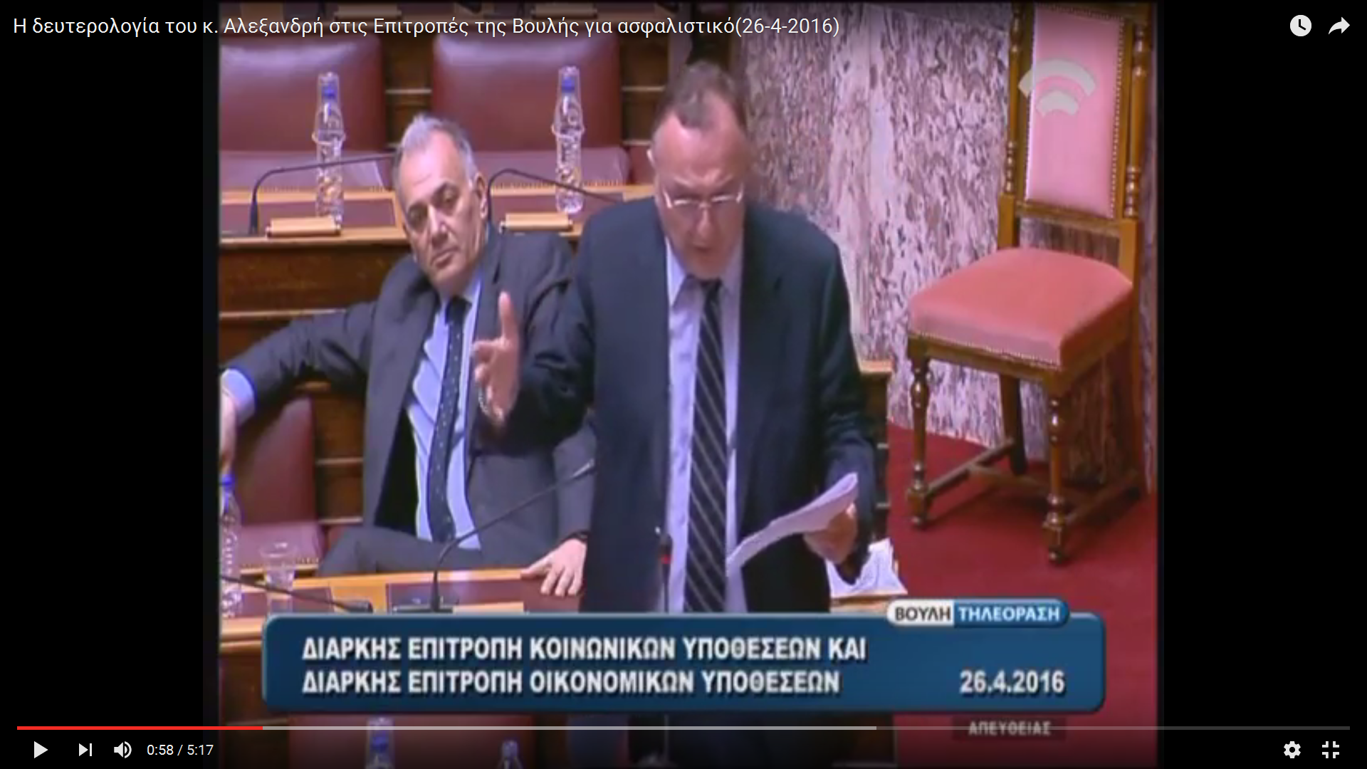 Παρέμβαση του Προέδρου της Ολομέλειας των Δικηγορικών Συλλόγων Ελλάδος Β. Αλεξανδρή κατά τη συζήτηση του ασφαλιστικού-φορολογικού νομοσχεδίου στις αρμόδιες επιτροπές της Βουλής