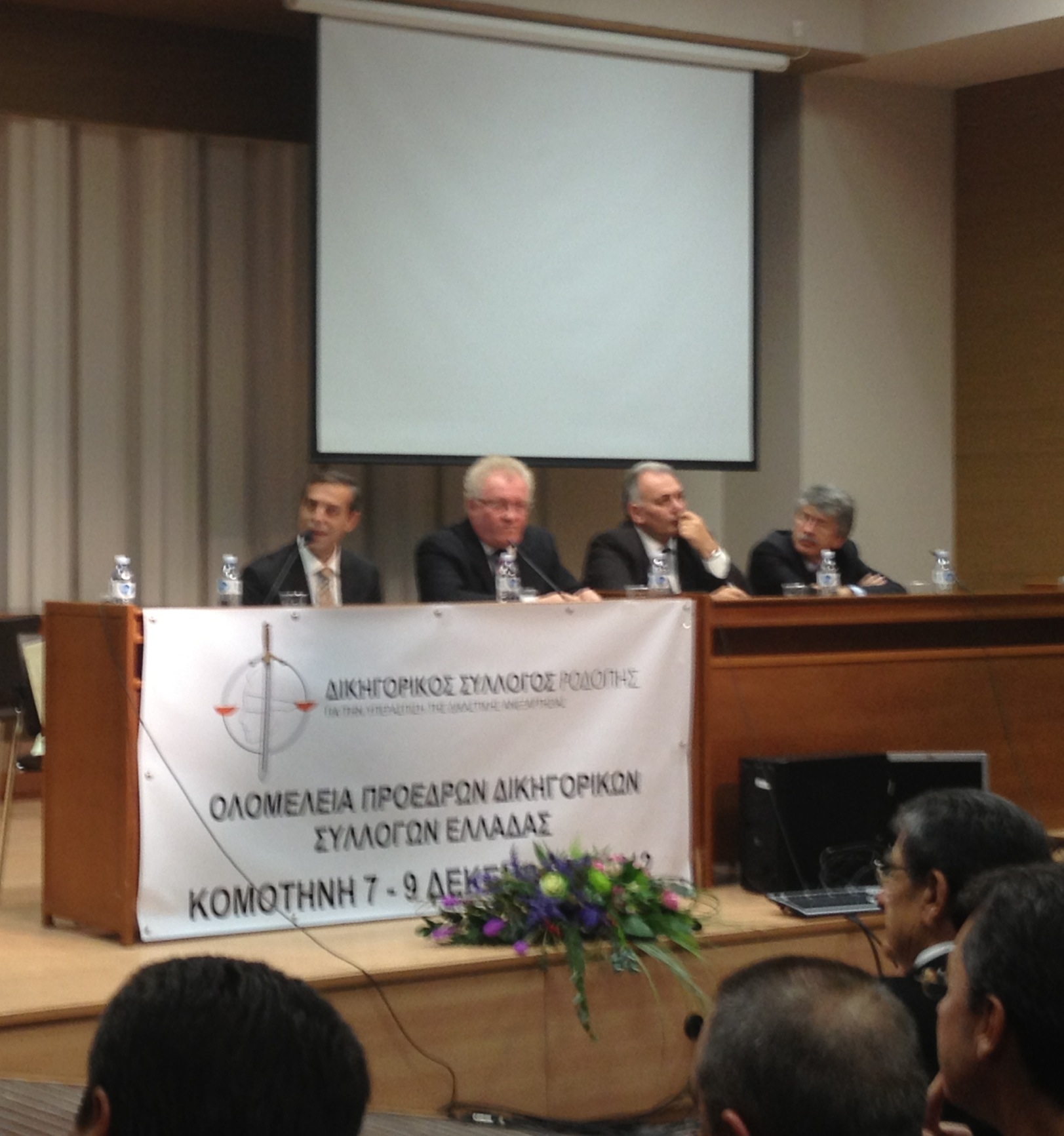 Κατά το τριήμερο 7 έως 9 Δεκεμβρίου 2012 συνήλθε στην Κομοτηνή η Ολομέλεια Προέδρων των Δικηγορικών Συλλόγων Ελλάδος με θέμα ημερήσιας διάταξης τη συζήτηση και την υποβολή παρατηρήσεων – προτάσεων επί του Σχεδίου της Νομοπαρασκευαστικής Επιτροπής για το νέο Κώδικα περί Δικηγόρων.