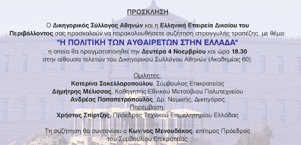 Εκδήλωση ΔΣΑ – ΕΕΔΠ: Η Πολιτική των Αυθαιρέτων στην Ελλάδα