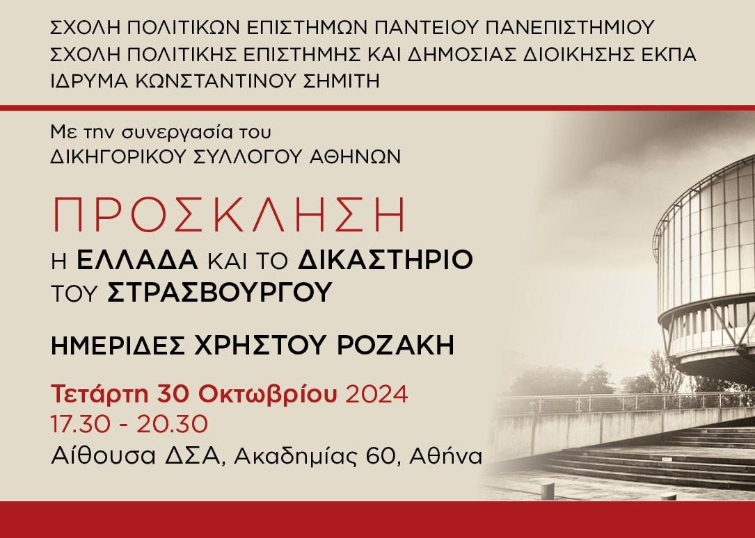 "Η Ελλάδα και το δικαστήριο του Στρασβούργου". Επισυνάπτεται το πρόγραμμα της ημερίδας.