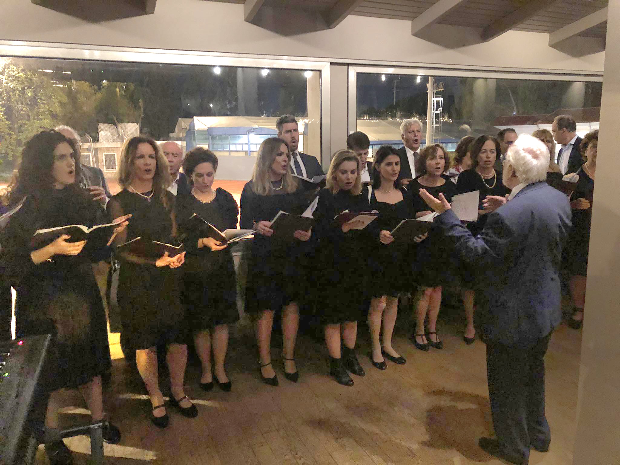 Η Χορωδία ΔΣΑ στον ζεστό χώρο της αίθουσας του Ramblas ερμήνευσε αντιπροσωπευτικά τραγούδια με συνοδεία ορχήστρας, σε Διδασκαλία και Διεύθυνση του Μαέστρου της Δημήτρη Καρούζου, Δικηγόρου και Καθηγητή μουσικής.