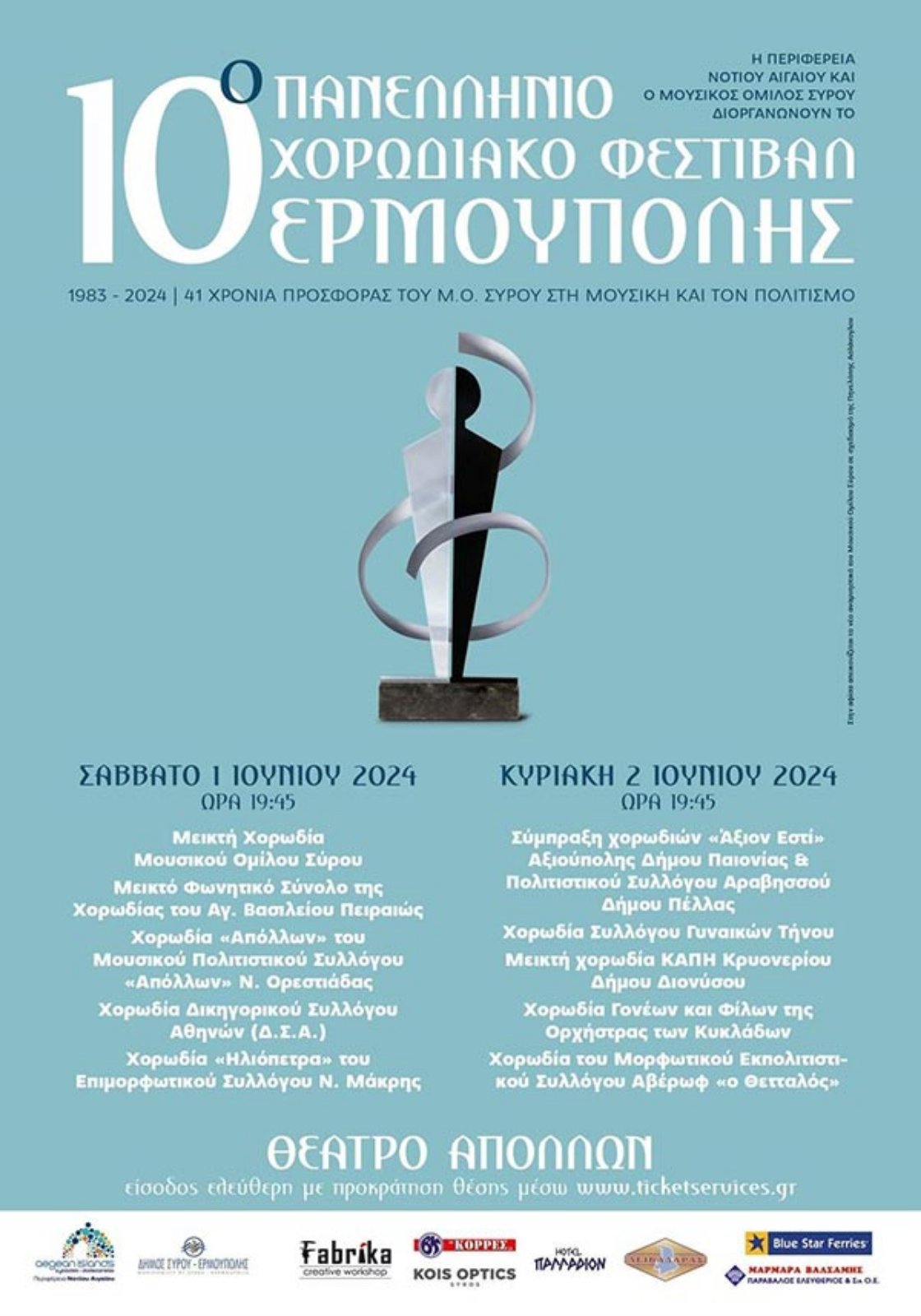 Η Χορωδία του ΔΣΑ σε Διδασκαλία και Διεύθυνση του Μαέστρου της κ. Δημητρίου Καρούζου, Δικηγόρου και Καθηγητή μουσικής, με ιδιαίτερη ευχαρίστηση και τιμή αποδέχτηκε την πρόσκληση συμμετοχής στο 10ο Πανελλήνιο Χορωδιακό Φεστιβάλ Ερμούπολης στη Σύρο, σε διοργάνωση της Περιφέρειας Νοτίου Αιγαίου και του Μουσικού Ομίλου Σύρου, προς τιμήν των 41 χρόνων (1983-2024) προσφοράς του Μουσικού Ομίλου Σύρου στη Μουσική και τον Πολιτισμό, που θα πραγματοποιηθεί το Σάββατο 01 Ιουνίου 2024 στο Θέατρο Απόλλων Ερμούπολης με ελεύθερη είσοδο.