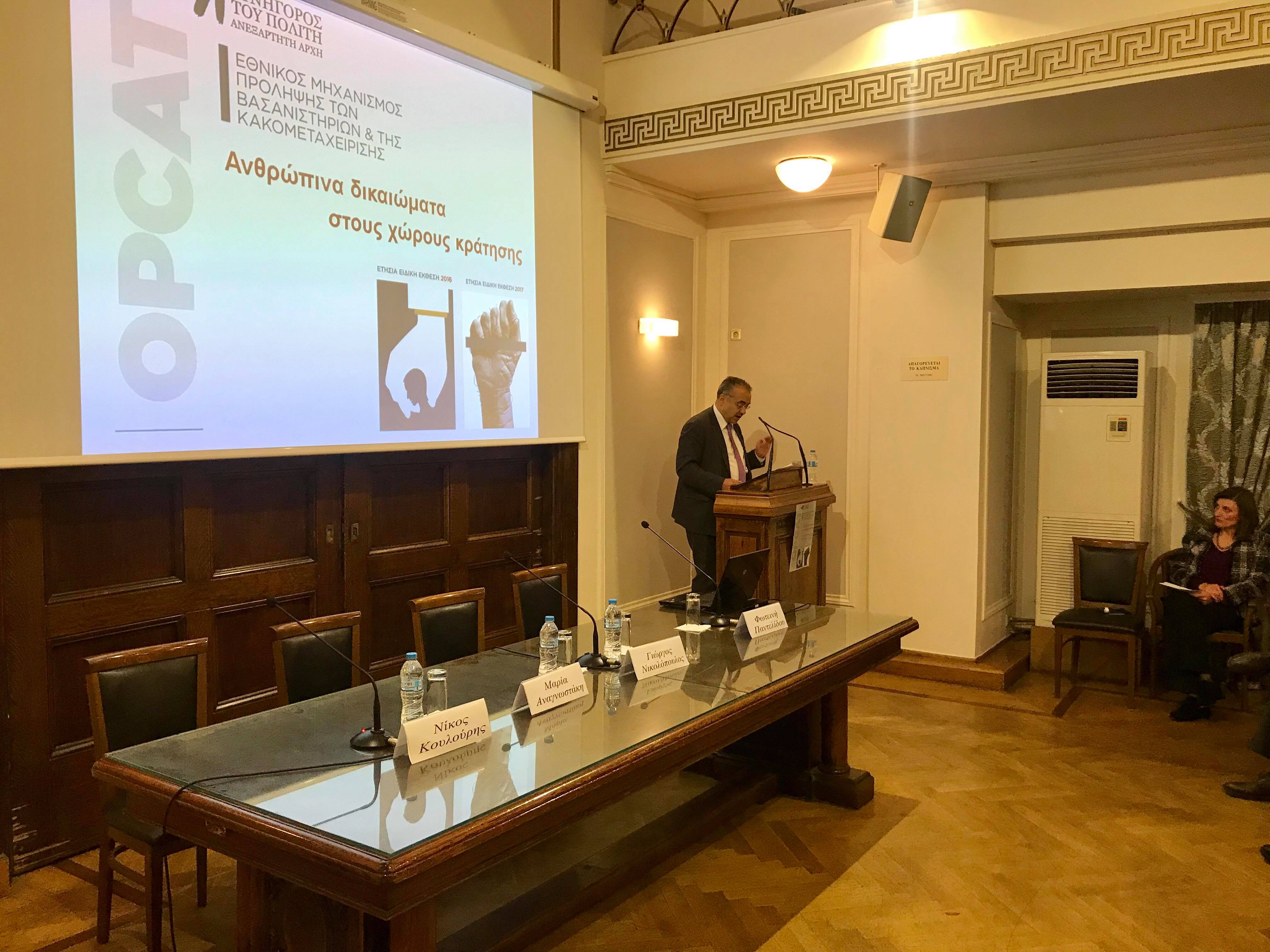 Ημερίδα του Συνηγόρου του Πολίτη, με θέμα "Ανθρώπινα δικαιώματα στους χώρους κράτησης", πραγματοποιήθηκε την Παρασκευή 7-12 ,στην αίθουσα τελετών του ΔΣΑ.