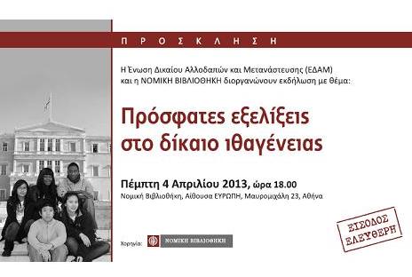 "Πρόσφατες Εξελίξεις στο Δίκαιο της Ιθαγένειας"