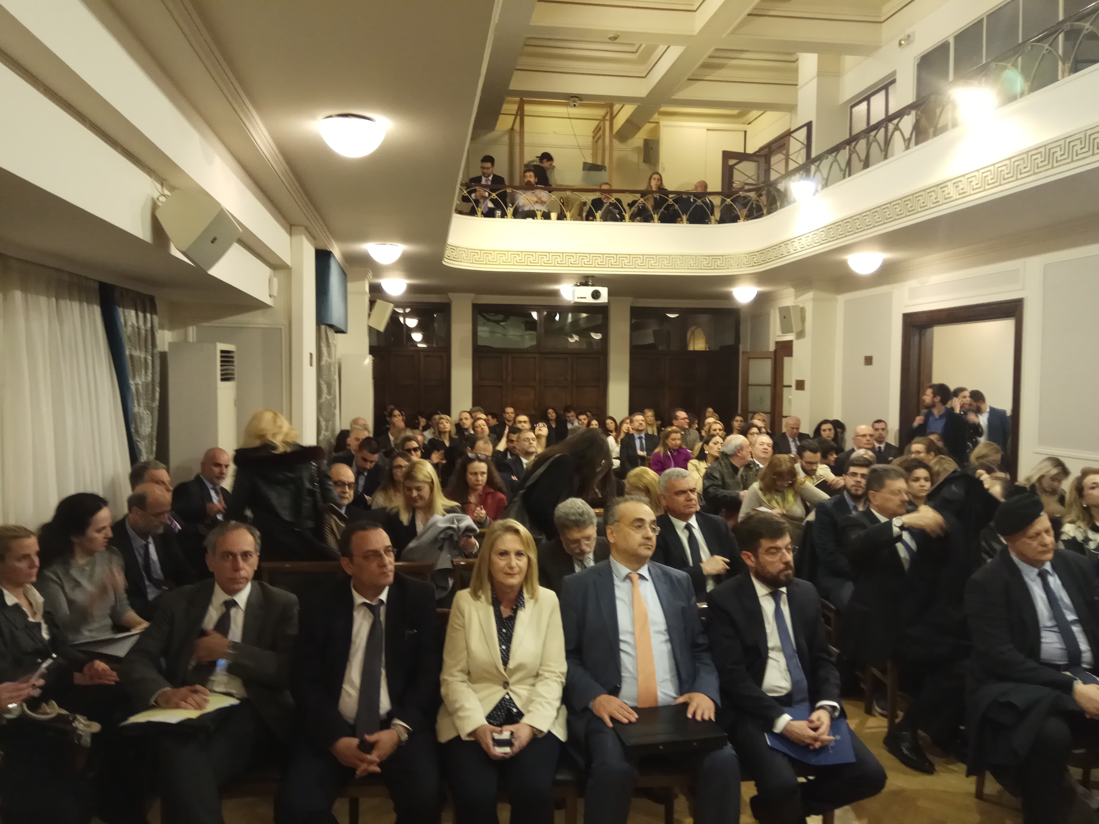 Χαιρετισμό στην εκδήλωση απηύθυναν ο υπουργός Δικαιοσύνης, Μιχάλης Καλογήρου και ο πρόεδρος του ΔΣΑ, Δημήτρης Βερβεσός.