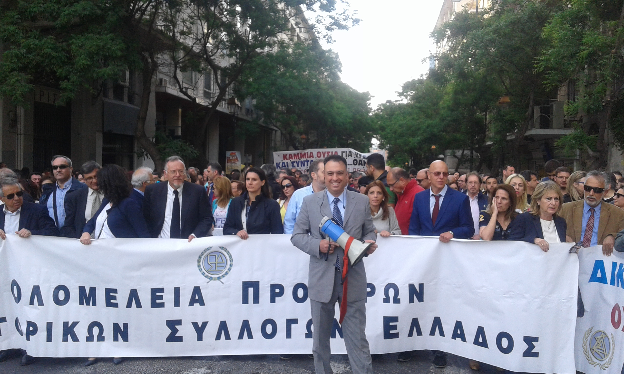 Σήμερα, στις 6 το απόγευμα, πραγματοποιήθηκε η πορεία διαμαρτυρίας των Δικηγόρων κατά του ασφαλιστικού-φορολογικού νομοσχεδίου. Ξεκινώντας από τα γραφεία του ΔΣΑ, στην οδό Ακαδημίας,  βάδισαν έως την πλατεία Συντάγματος, όπου διεξαγόταν το κεντρικό συλλαλητήριο διαμαρτυρίας.