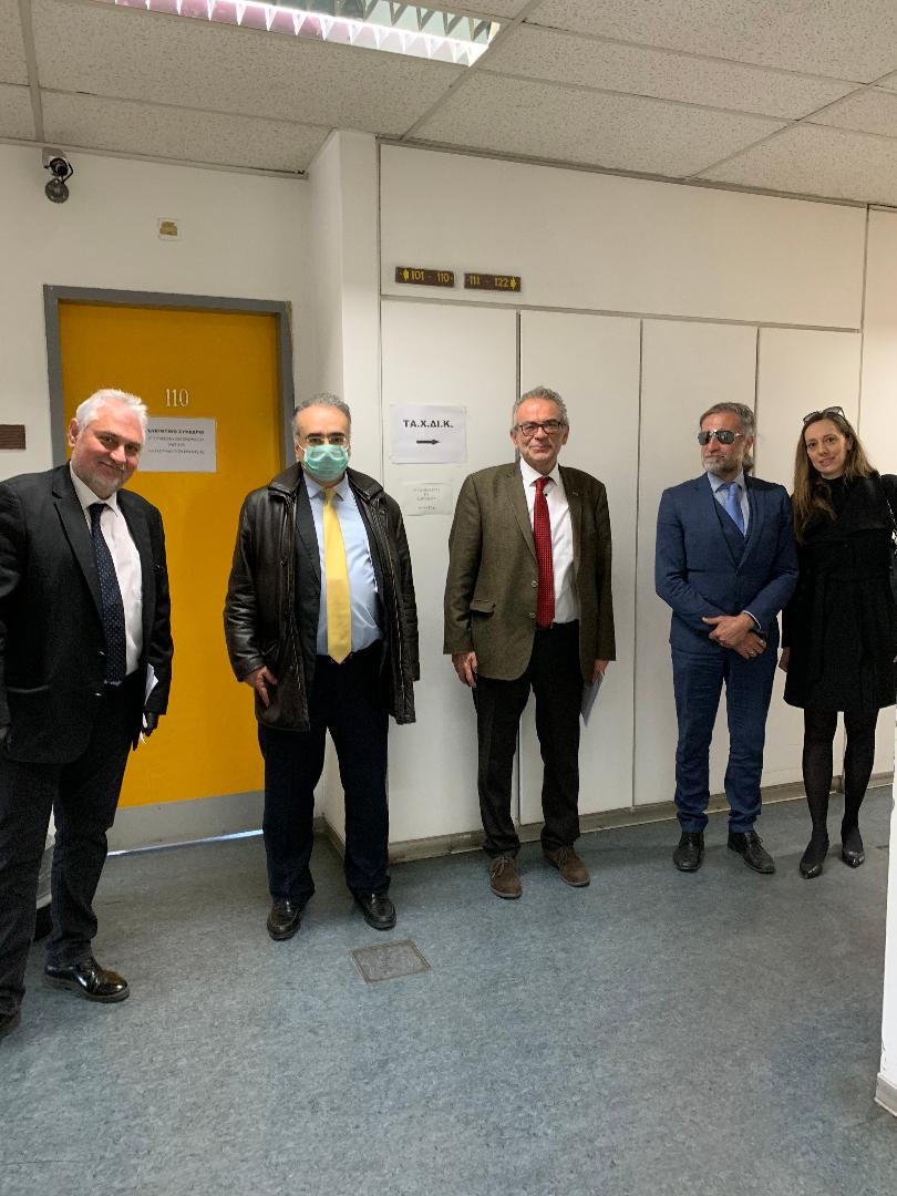 Πραγματοποιήθηκε σήμερα συνάντηση αντιπροσωπείας της Ολομέλειας των Προέδρων Δικηγορικών Συλλόγων Ελλάδος, αποτελούμενη από τον Πρόεδρο της Ολομέλειας και του ΔΣΑ, Δημήτρη Βερβεσό, και τον Πρόεδρο του ΔΣΠ, Γεώργιο Σταματογιάννη, με τον Υπουργό Δικαιοσύνης, Κωνσταντίνο Τσιάρα και τον Γενικό Γραμματέα του Υπουργείου Δικαιοσύνης και Πρόεδρο του ΤΑΧΔΙΚ, Πάνο Αλεξανδρή, για τα επείγοντα ζητήματα που αφορούν τη λειτουργία της Δικαιοσύνης καθώς και την επίσπευση της εκκαθάρισης και εξόφλησης των αμοιβών νομικής βοήθειας.