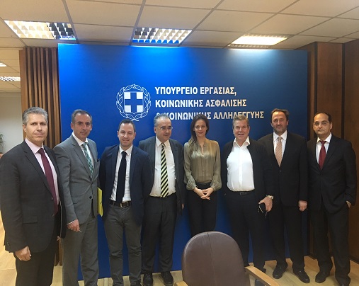 Με την Υπουργό Εργασίας, Κοινωνικής Ασφάλισης και Κοινωνικής Αλληλεγγύης, Έφη Αχτσιόγλου και τον Υφυπουργό, Αναστάσιο Πετρόπουλο, συναντήθηκε σήμερα αντιπροσωπεία της Συντονιστικής Επιτροπής Δικηγορικών Συλλόγων της χώρας, αποτελούμενη από τον Πρόεδρο της Ολομέλειας, Δημήτρη Βερβεσό, τους Προέδρους των Δικηγορικών Συλλόγων Θεσσαλονίκης, Ευστάθιο Κουτσοχήνα, Πάτρας, Θανάση Ζούπα, Καστοριάς, Γεώργιο Μπαλιάκα, Ηλείας, Δημήτρη Δημητρουλόπουλο, Μεσολογγίου, Χρήστο Παΐσιο και τον σύμβουλο της Ολομέλειας σε θέματα ασφαλιστικού, Διονύση Ρίζο.