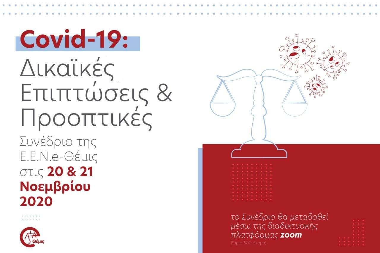 Η Ένωση Ελλήνων Νομικών e-Θέμις διοργανώνει Συνέδριο με θέμα «Covid-19: Δικαϊκές Επιπτώσεις & Προοπτικές» στις 20 & 21 Νοεμβρίου 2020.