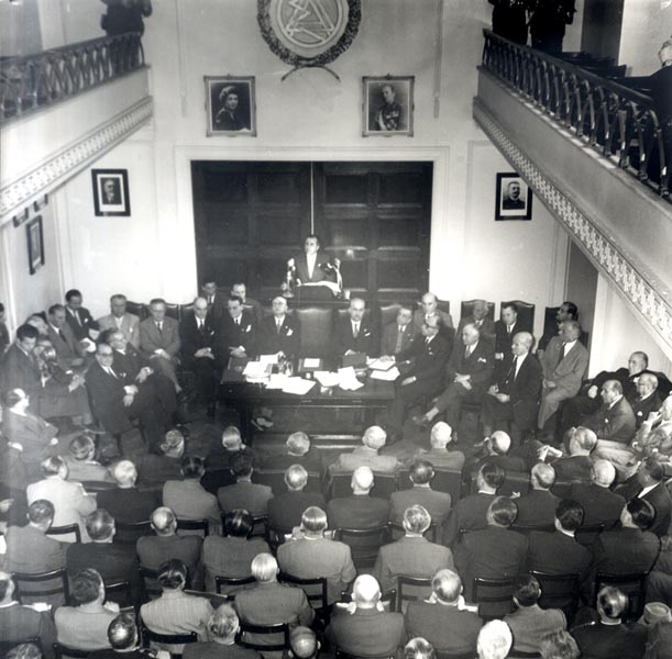 Πρόεδρος της συνέλευσης κατά τον νόμο έπρεπε να ορισθεί ο αρχαιότερος δικηγόρος, που στη συγκεκριμένη περίπτωση ήταν ο πρώην πρωθυπουργός Κωνσταντίνος Κωνσταντόπουλος, σε ανάρρωση κατά την περίοδο αυτή. Έτσι την προεδρία των συνεδριάσεων ανέλαβε, ως αμέσως επόμενος, ο 78χρονος Σίμος Μπαλάνος, που είχε ορισθεί δικηγόρος το 1857 και ασκούσε επιτυχώς το επάγγελμα επί 52 χρόνια.